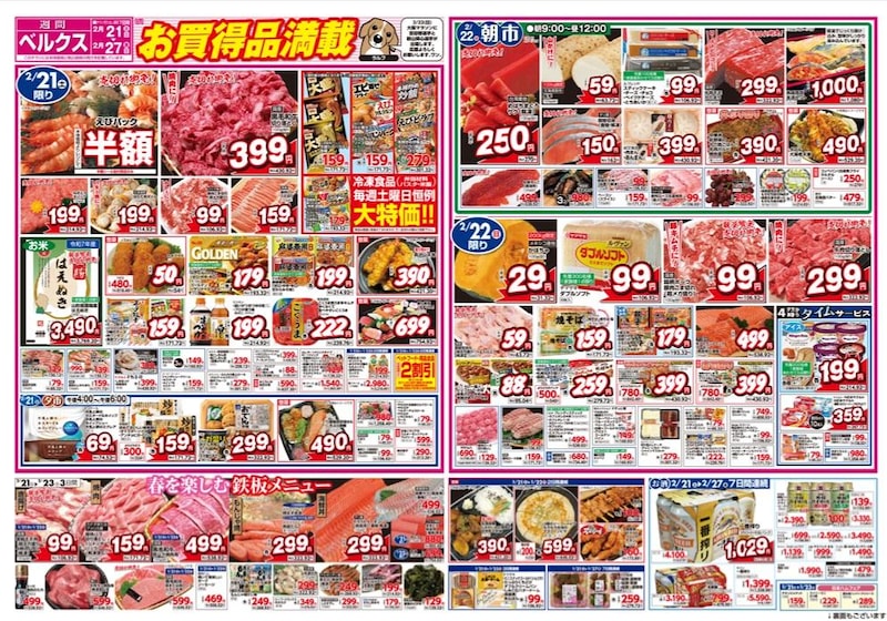 かくいう筆者もそのひとりです。2026年2月21日から27日が対象のチラシをみてみたところ、食料品の安さに驚きました。