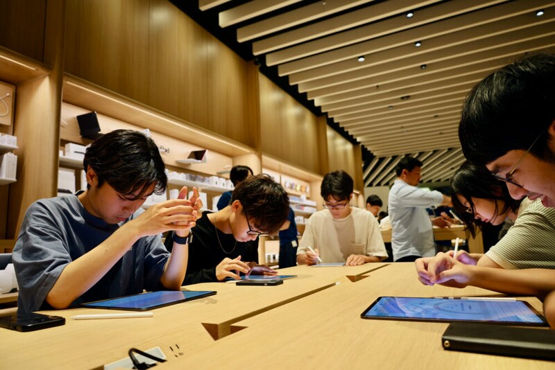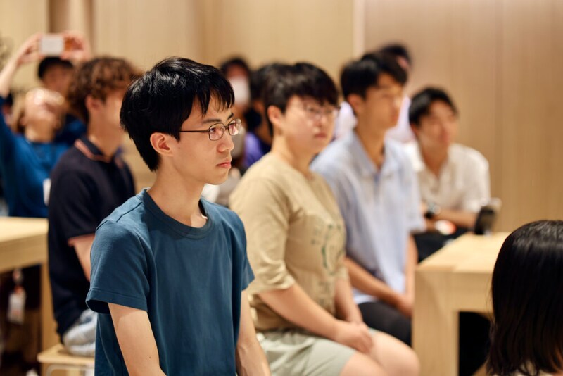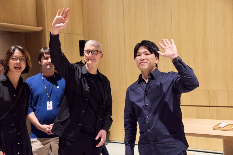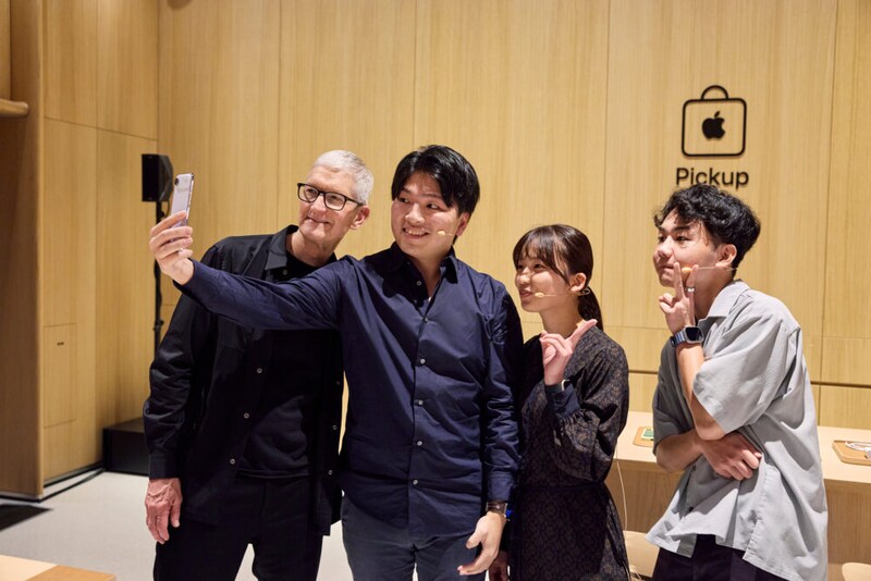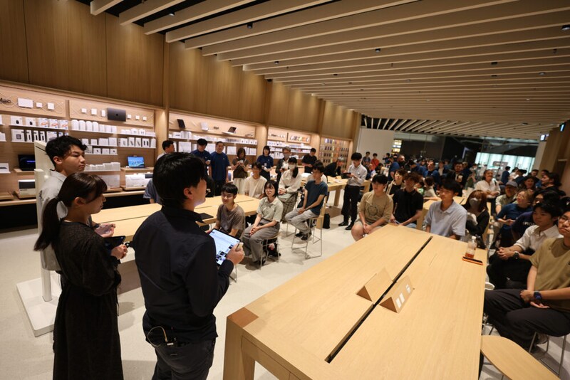 2025年9月26日、Apple銀座のオープンセレモニーのあと、ティム・クックCEOは大阪のApple梅田に向かった。Apple梅田は今年7月26日にオープンしたので、クックCEOは初来訪となる。店内では、Swift Student Challenge 2024の入賞者3人が大学生に向けてToday at Appleを行っており、そこにティム・クックCEOがサプライズで登場するという趣向だ。