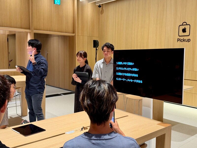 Today at Appleを行ったのは、Swift Student Challenge 2024に入賞した尾崎正和さん、秋岡菜々子さん、河原慶太郎さんの3人。