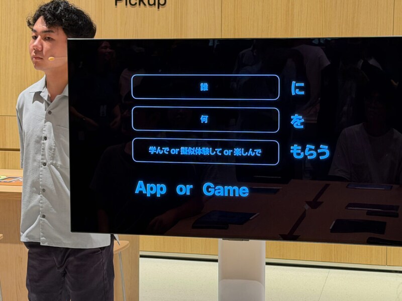 その彼らが、「なぜアプリを開発するか?」「どう考えてアプリを開発すればいいか?」とレクチャーするのが今回のToday at Appleのテーマ。集まった十数人の大学生も熱心に耳を傾ける。