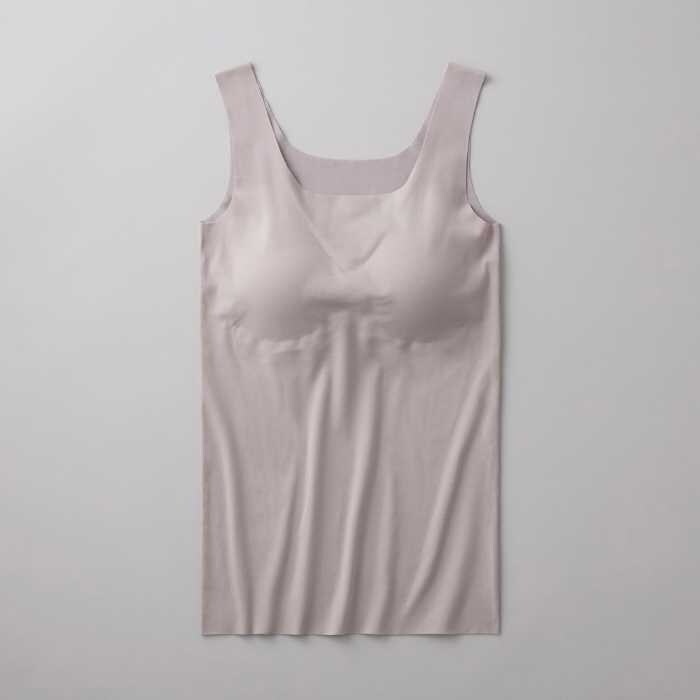 カップ付きタンクトップは価格2,420円。サイズはM・L・LLで、カラーはブラック・ノーブルスカイ・グレースベージです。1枚で着られるカップ付き仕様で、すっきりとした着用感が魅力です。