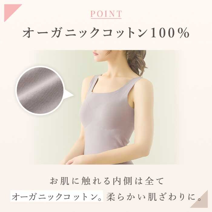 肌に直接触れる部分にはオーガニックコットン100%を使用し、外側には伸縮性のある素材を組み合わせることで、綿100%インナーには少ないストレッチ性も実現しています。