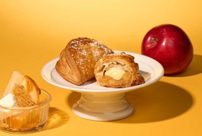焼きたて濃厚アップルパイ3種のチーズ&はちみつは、RINGOアップルパイの特徴でもあるカスタードクリームの代わりに、ゴーダチーズとクリームチーズにはちみつを合わせたハニーチーズクリームをたっぷり詰め込んだ贅沢な仕上がり。
