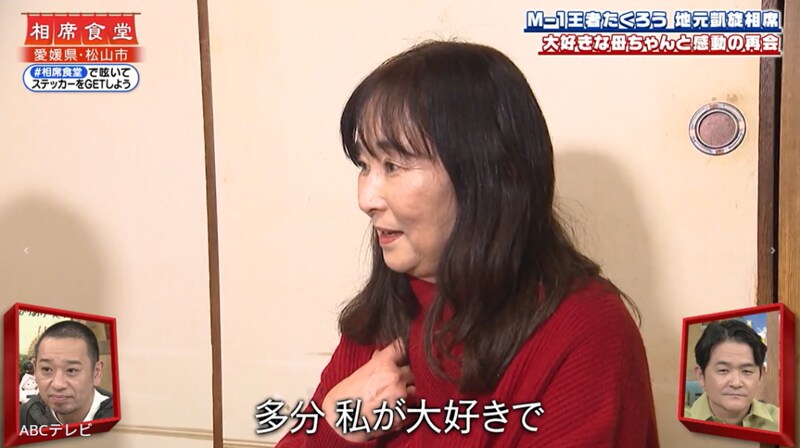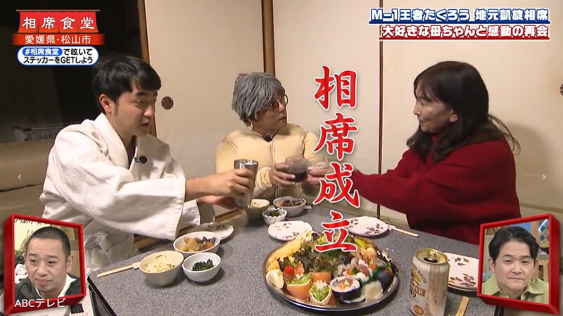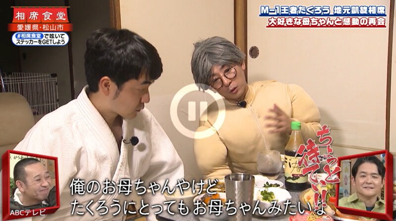 バラエティ番組『相席食堂』(ABCテレビ)に、漫才頂上決戦『M-1グランプリ2025』王者・たくろうが登場! ツッコミ担当・きむらバンドが、女手一つで育ててくれた64歳の母親と久しぶりに再会するも、イマイチ泣けない予想外の行動に出て……!?