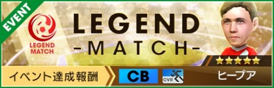 “レジェンドマッチ”は、レジェンドチームと対戦し、勝利ポイントゲージが一定量に達すると豪華なアイテムが獲得できるイベントです。