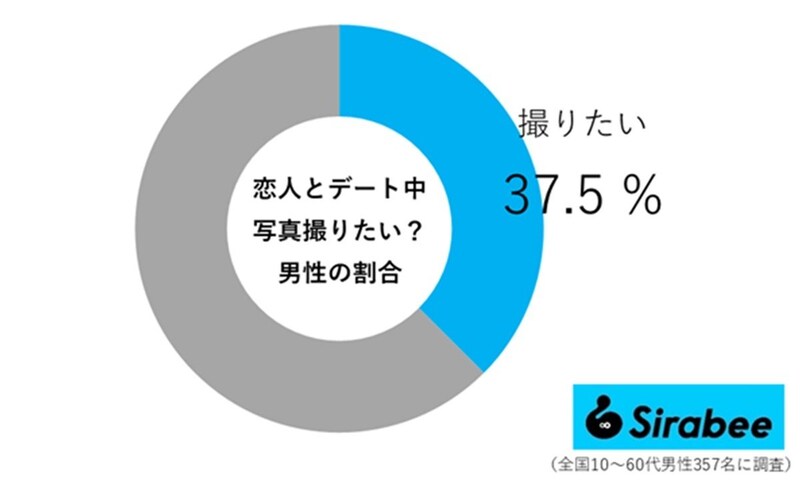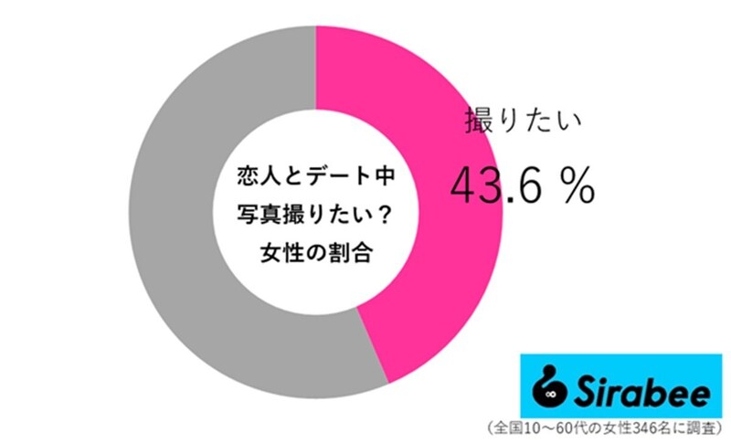 過半数は超えなかったものの、男性より女性のほうが「デート中の写真を撮りたい」と思う人の割合が高いことが分かりました。