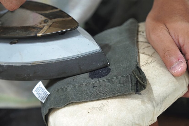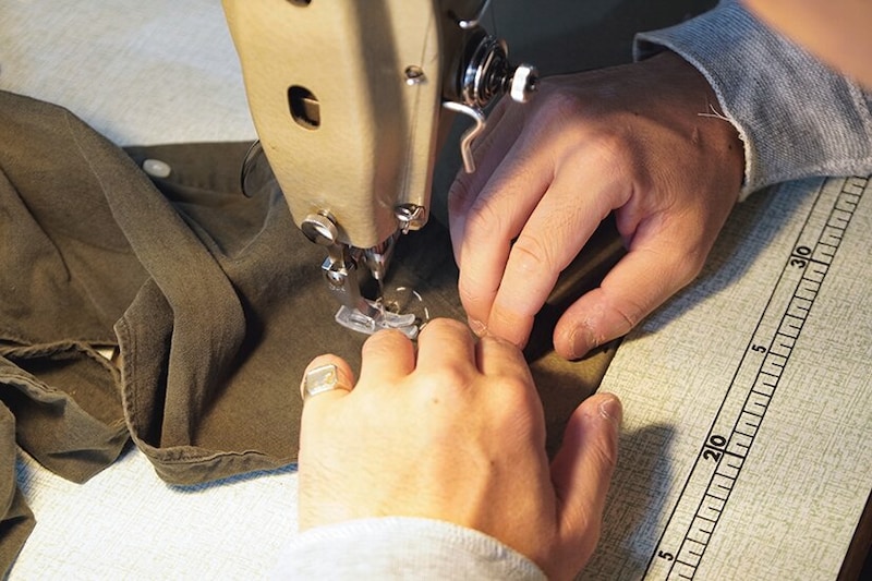 縫った後はしつけ糸を外し、霧吹きをかけドライヤーで熱を与えながら糸を整える。この一手間で出来上がりの自然さが見違えるほどに変わる。