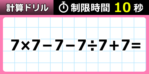 「7×7-7-7÷7+7」この計算に制限時間10秒で挑戦!順番に気を付ければ、カンタンに解けちゃいます!