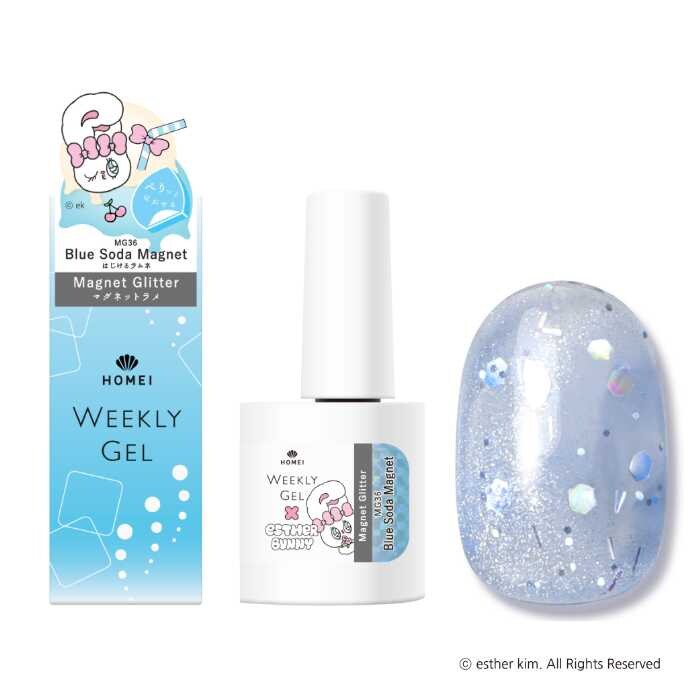 HOMEIウィークリージェルとエスターバニーのコラボ第三弾では、大粒ホログラム入りのマグネットネイルが登場。