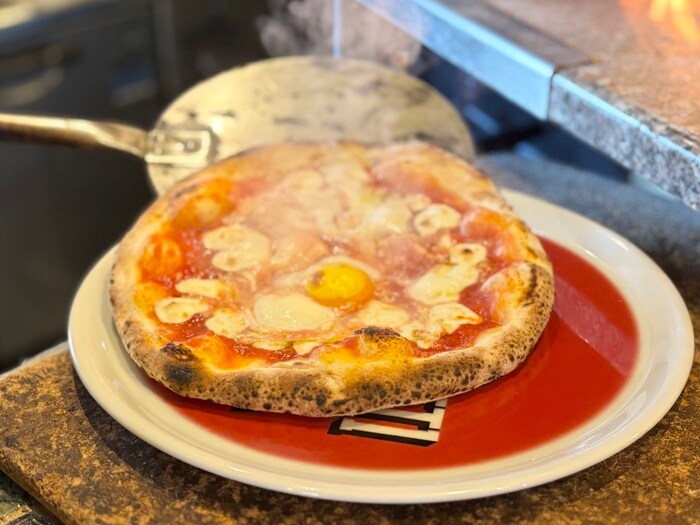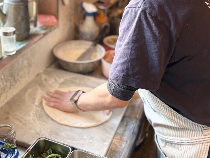 オーダー後に手捏ねして焼き上げるナポリピザ