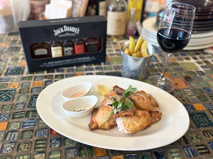 数種類のハーブ&スパイス、オリーブオイルで漬け込みねかせた鶏肉をじっくりとオーブンで焼きあげる逸品、皮はパリッと香ばしくジューシーな脂と旨みがたまらない一品。
