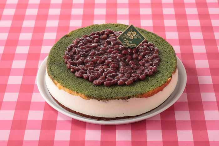 抹茶シロップを含ませたスポンジにティラミス風ムースを重ね、あずきをトッピング。ほろ苦さと甘みのバランスが絶妙。