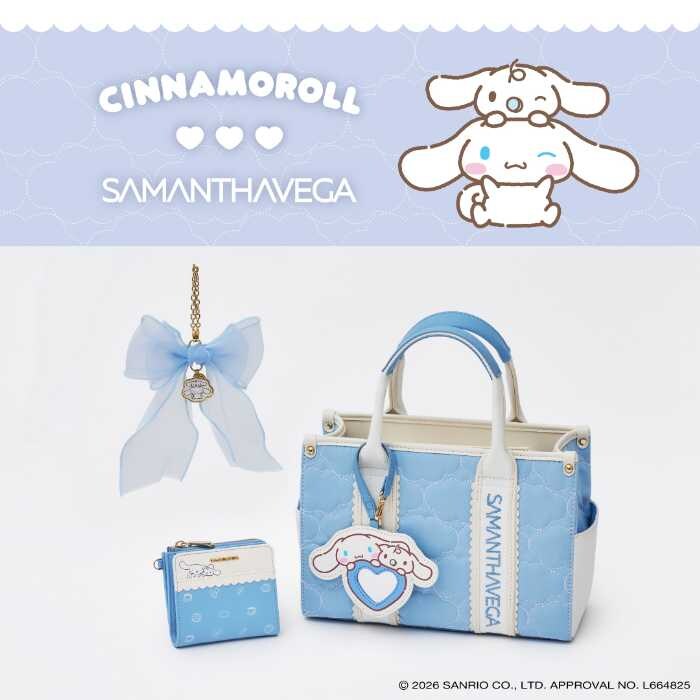 サマンサベガから、サンリオの人気キャラクター「シナモロール」と「ポチャッコ」のコラボコレクションが登場します。キャラクターの世界観を取り入れたバッグや財布、バッグチャームは、毎日のコーデを楽しく彩るキュートなアイテムばかり。フェミニンにもカジュアルにも合わせやすく、ファンはもちろん大人可愛いスタイルが好きな方にもおすすめのラインアップです♡