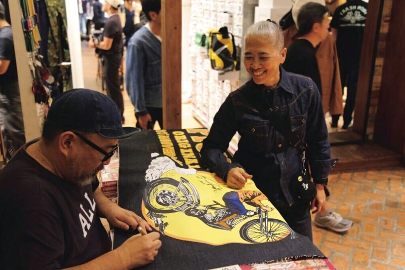 ライトニングのブースも設置していただき、ワークウエアやミリタリーウエア、スウェットシャツやアロハシャツなど、ヴィンテージピースを集めた「Lightning ARCHIVES」シリーズをはじめ、雑誌を販売。我らが松島親方は、バンコクのライトニングファンの方々へのサインで大忙しだった!