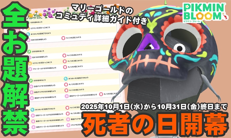 2025年10月1日(水)、本日より位置情報ゲーム『ピクミン ブルーム』にて、メキシコの伝統的な祝祭“ディア・デ・ムエルトス”にちなんだイベントが開幕。
