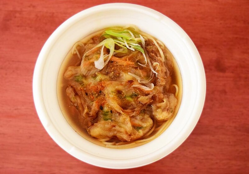 コンビニ各社では、大きなかき揚げが印象的な「かき揚げそば」が販売されています。ガッツリ食べたい時にもおすすめです。