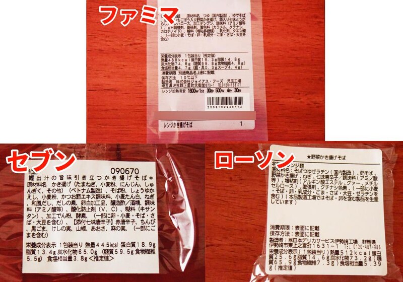 2023年にもコンビニ各社の「かき揚げそば」の重量を比較しましたが、その時と同じ重量順です。