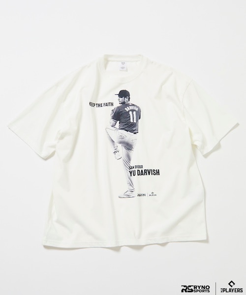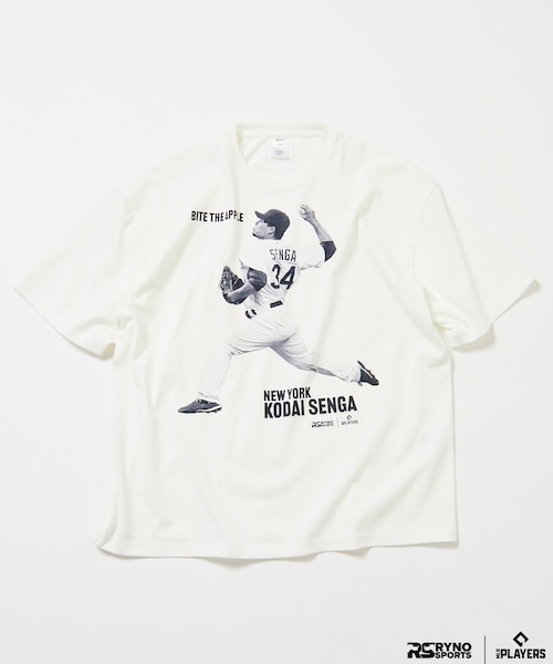 MLBで活躍する日本人プレイヤーの全身を捉えたフォトグラフィックを使用したコラボレーションTシャツ。