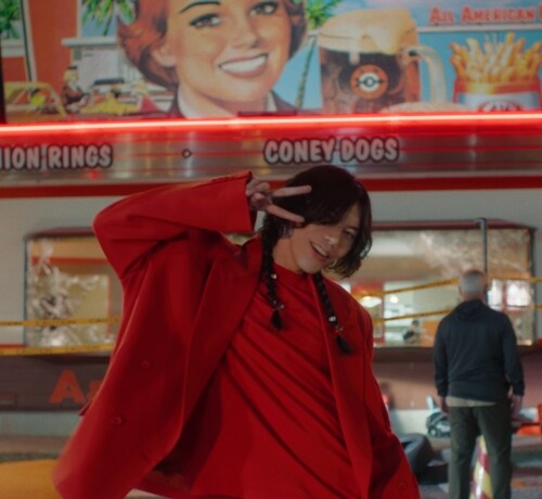 「さよーならまたいつか!」のミュージックビデオは、三つ編みでパワーショルダーを着た米津玄師が登場。ダイナーを舞台に、さまざまな展開が巻き起こるストーリーで、逆再生することによって物語が進んでいき、「生まれた日から私でいた」ことを肯定するような作品に仕上がっている。