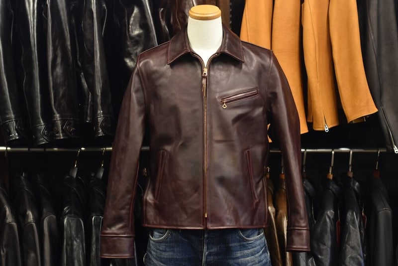 レザーの種類も豊富で、AERO LEATHER定番のフロントクオーターホースハイドに加えてホーウィン社のクロムエクセル・ステアハイドや、世界最高級フルグレインレザーであるヴィチェンツア・ベジ・ホースハイドや、最高到達点の意味の名を持たせたピナクル・ホースハイドと、どれも最高級な素材の中から好みに合わせた物で選択することができる。