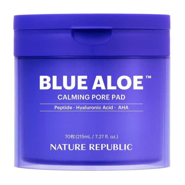 ネイチャーリパブリックが開発した独自成分「ブルーアロエ™」は、韓国済州島産の生アロエ*、氷河水¹、ペプチド²を組み合わせた整肌成分です。毛穴まわりをふっくら整え、肌にハリとうるおいを与えます。