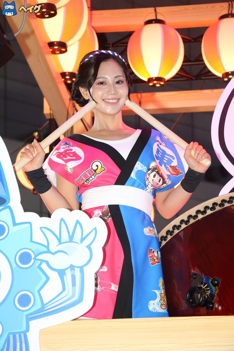 試遊スペースはお祭りをイメージした作りになっており、楽しそうな雰囲気に包まれています。加えて、浴衣・はっぴ姿のコンパニオンや桃太郎、貧乏神が花を添えてくれます。