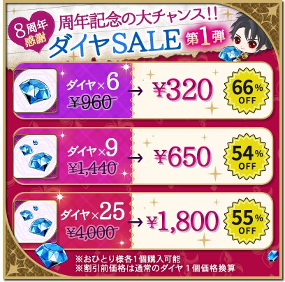 企画5.:8周年記念感謝ダイヤセール開催