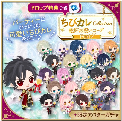 周年をお祝いする“乾杯お祝いコーデ”をまとった、総勢22人+1匹のちびアバターが手に入るコレクションです。