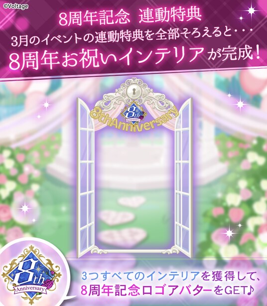 日頃より応援してくださる皆さまへの感謝を込めて、今年は「Unlocked By You 紡いだ愛を胸に、これからもあなたの隣で──」をテーマに、 14キャラクター全員が登場するストーリーイベントをはじめ、限定アバターや特別アイテムが手に入るキャンペーンなど、8周年を彩るさまざまな企画をご用意しております。
