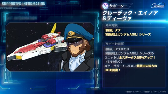 期間限定ユニットとして、UR「ガンダムAGE-2 ノーマル(EX)」 /UR 「アセム・アスノ」がピックアップガシャに登場!また、UR「ガンダムAGE-1 ノーマル(EX)」/UR「フリット・アスノ」や、URサポーター「グルーデック・エイノア&ディーヴァ」も新登場!