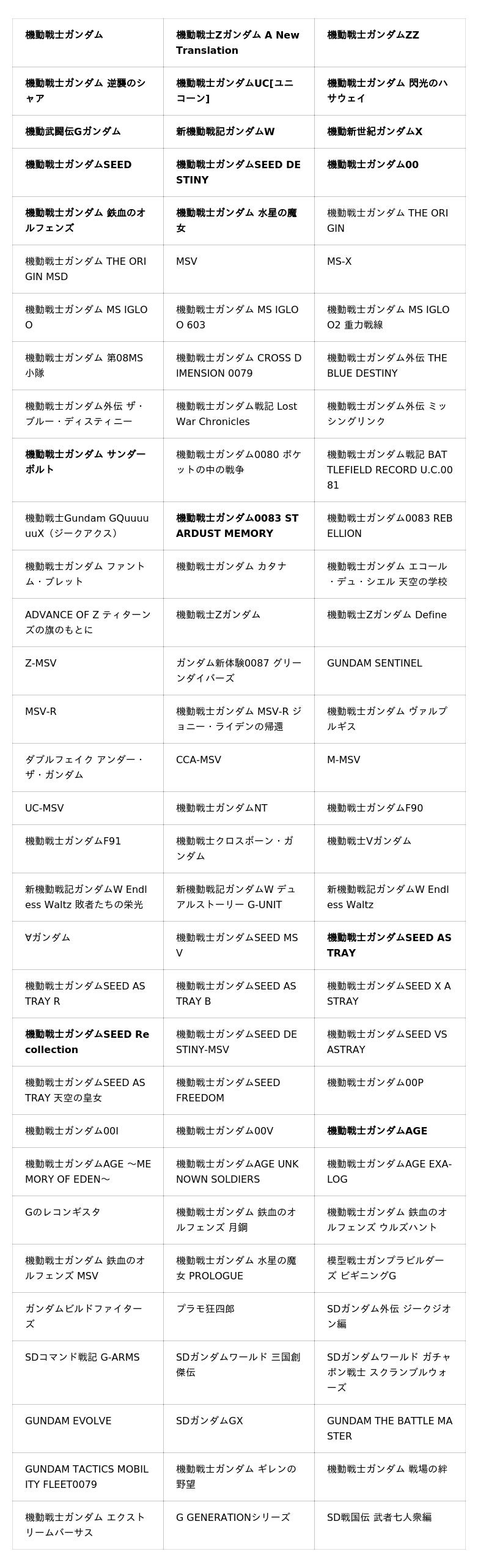 ※「機動戦士ガンダムAGE」は一部シナリオのみの実装です。ステージ16以降は後日のアップデートを予定しております