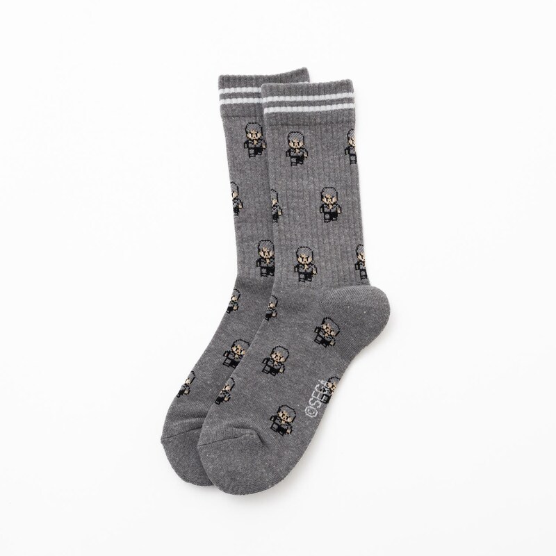 Loading画面でおなじみ、8bitキャラクターの桐生一馬をあしらったライン入りソックス。