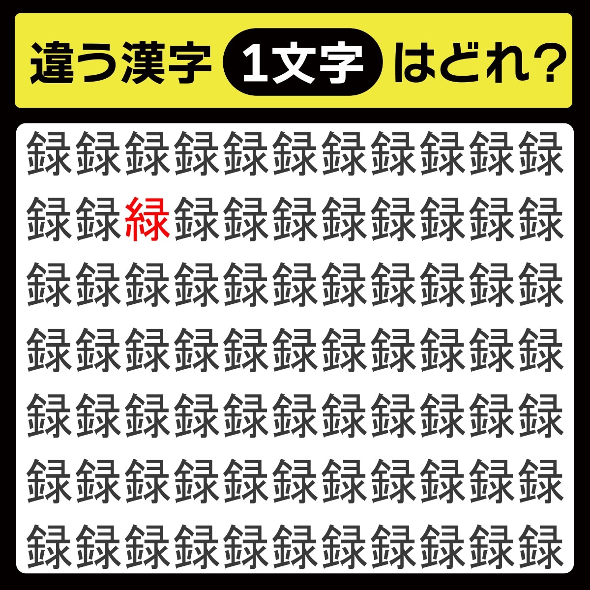 違う漢字は、上から2行目、左から3番目の文字でした!