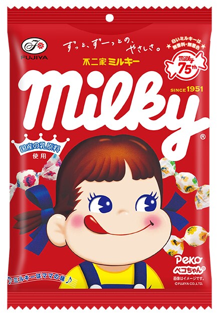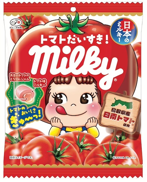 また、ミルキー発売75周年を記念し、鳥取県産のブランドトマトを使用した新商品「トマトだいすき!ミルキー袋」が3月3日より発売。