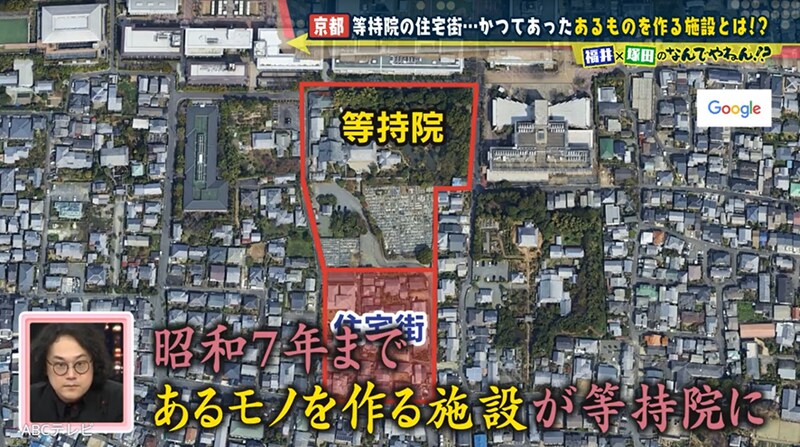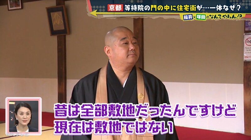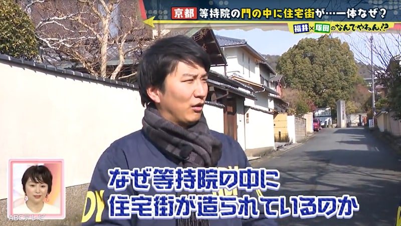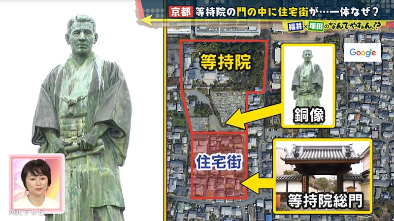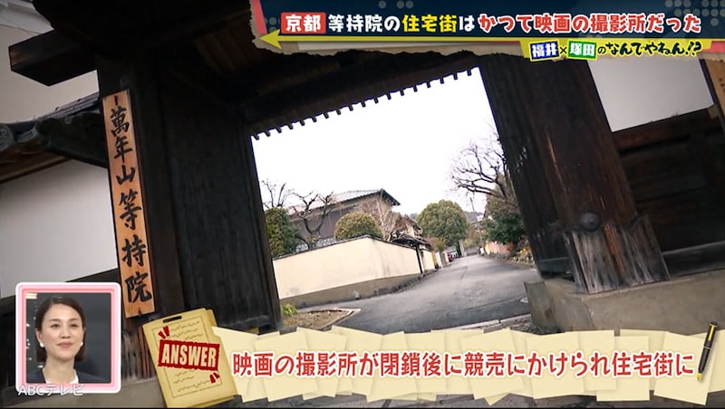 関係者いわく、昔は衣笠山の麓から現在の立命館大学の敷地一帯までが、等持院の土地だったという。そのため塚田と福井アナは、「等持院の土地が売られたから住宅街になった」と推測した。