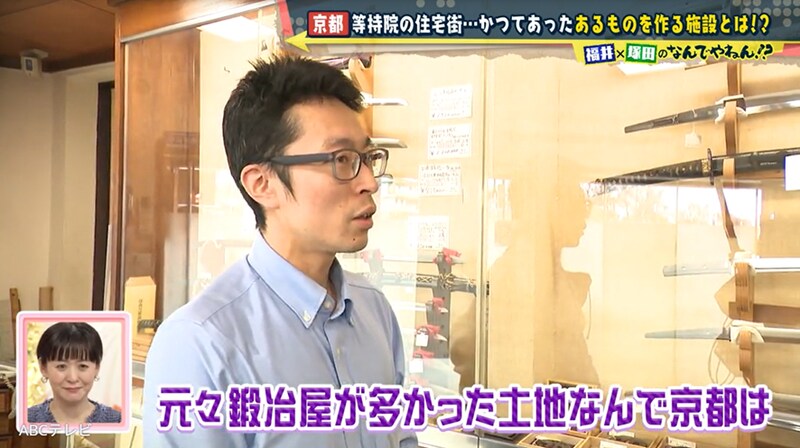 京都といえば、かつて刀鍛冶の店が多く存在した土地。そこで二条城の南側にある刀剣専門店を調査した福井アナは、「(等持院の敷地内にかつて)刀を作る施設があり、刀鍛冶職人も住んでいた」と予想した。