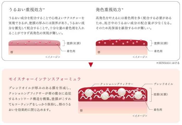 センサイモイスチャーインテンスリップスティックは、SENSAIの技術と感性を結集し、「うるおい」と「高発色」の両立を実現したリップスティックです。
