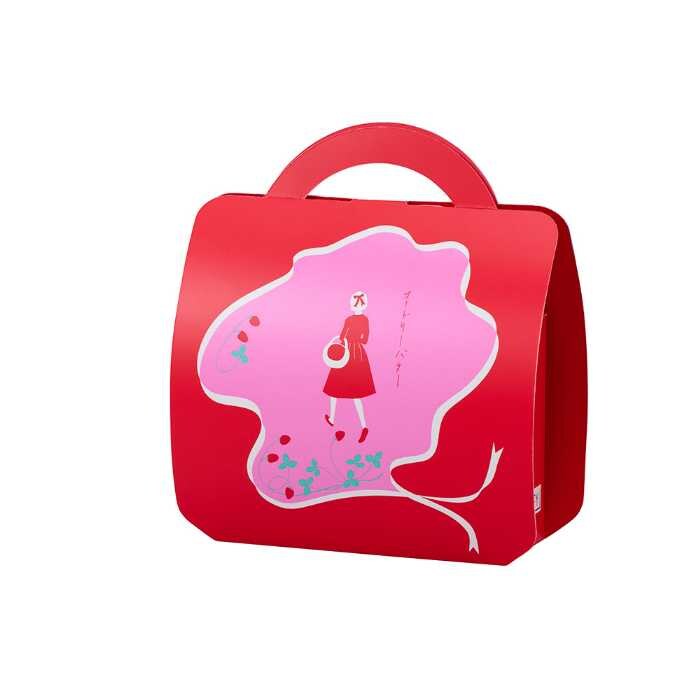苺の形をした焼き菓子で、じっくり焼いたクッキーにフリーズドライ苺入りミルクチョコレートを重ねました。新登場のミルクチョコレート味が楽しめます。