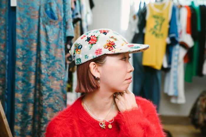 今回登場する「Chenille Jet Cap」は、フェイラーの製造工程で生まれる残反を用いて千葉県の古着屋「マグノリア」で一点一点手作りされた特別なキャップ。