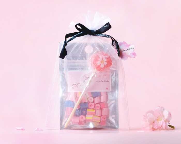 桜ミックスと桜ロリポップをセットにした季節限定ギフト。透け感のあるオーガンジー巾着入りで、軽やかな春らしさを楽しめます。