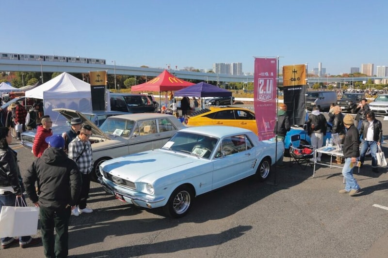 お馴染みのカーショーでは、クラシックカーの展示やカーグッズ、インテリア雑貨の販売が行われた。なかなか見られないレアな車両に、クルマ好きが興味津々。