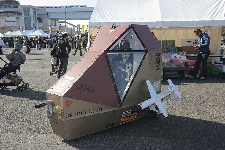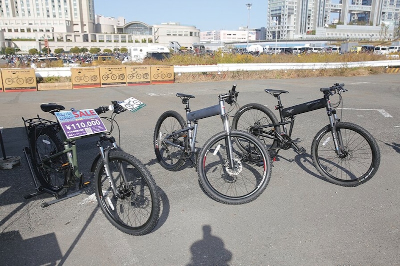 カーショーのエリアにはカスタムバイクの展示も行われた。またアメリカ海兵隊から生まれた折りたたみマウンテンバイクの試乗も実施。
