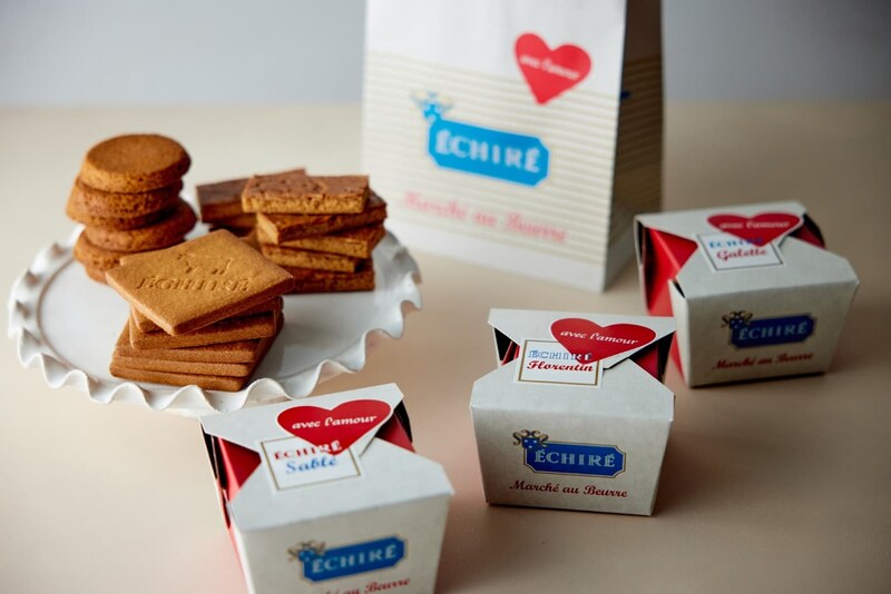 また、ホワイトデーまでの期間は「サブレ・エシレ 6枚入」「ガレット・エシレ 6枚入」「フロランタン 8枚入」を、赤いハートのモチーフに「avec l’amour(愛とともに)」のメッセージをあしらった限定デザインのボックスで販売。ショッパーにも同じデザインが施されており、バレンタインのお返しにもぴったりです。