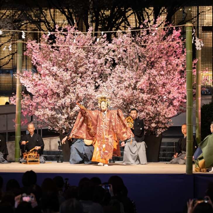イベント期間中は毎日異なる日本の伝統芸能を開催。篝火(かがりび)を焚いて演じる「京都薪能」や、「社会問題に挑むかぶき者」による創作歌舞伎・桜華絢爛、日本遺産にも登録された島根県の伝統芸能「石見神楽」などを楽しむことができる。