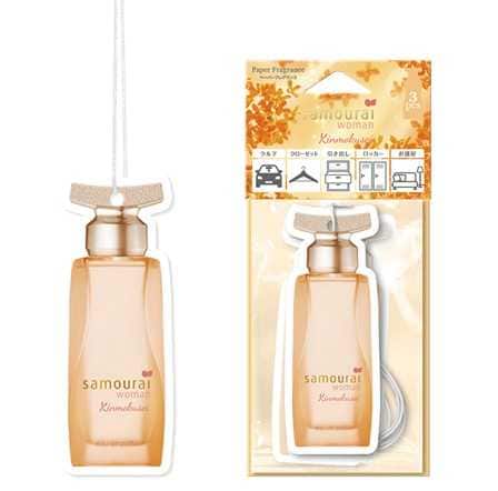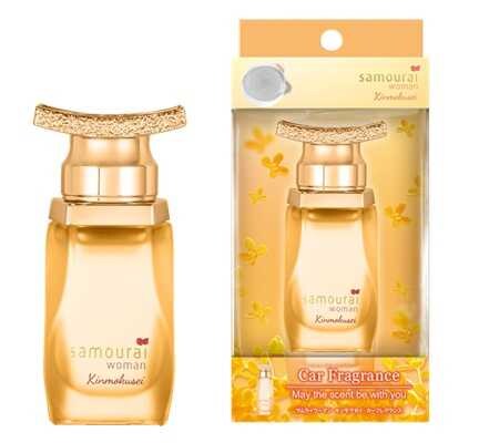 新作「サムライウーマン キンモクセイ」から登場したカーフレグランス(15mL/1,100円税込)は、エアコン送風口に装着するだけで車内を心地よい香りで満たします。