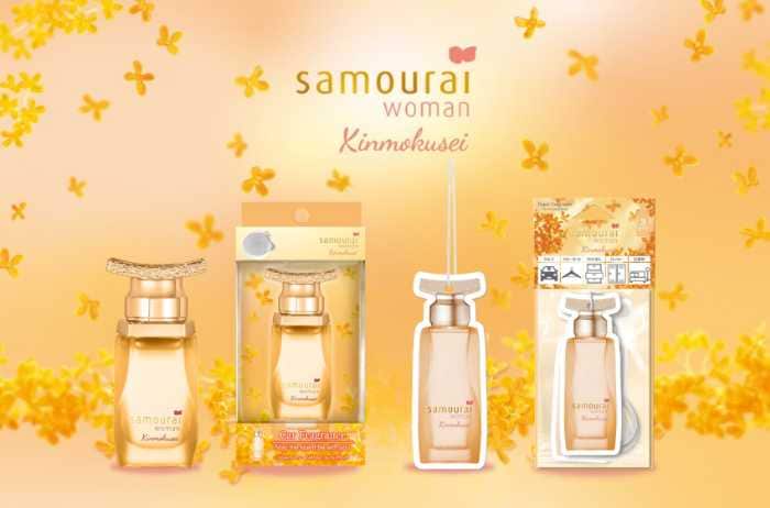 車だけでなく日常に寄り添う「サムライウーマン キンモクセイ」のフレグランスアイテムも登場。ファブリックミスト(300mL/880円税込)は除菌・消臭効果付きで衣類をリフレッシュ。