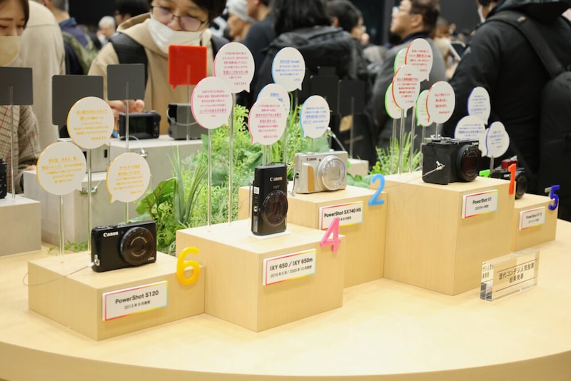 キヤノンでは歴代コンデジの人気投票を行っており、この30年間に使われてきた懐かしい機種が並んでいた。今、若者の間でレトロコンデジが人気を集めているのも、こうしたアナログ的な価値が見直されている流れのひとつなのだろう。