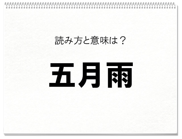 【答】 さみだれ陰暦五月に降る雨のことをいうため「五月」と書きますが、現在の暦とは1か月ほどズレています。つまり、梅雨時の雨を指すわけです。ちなみに「五月雨」は夏の季語。