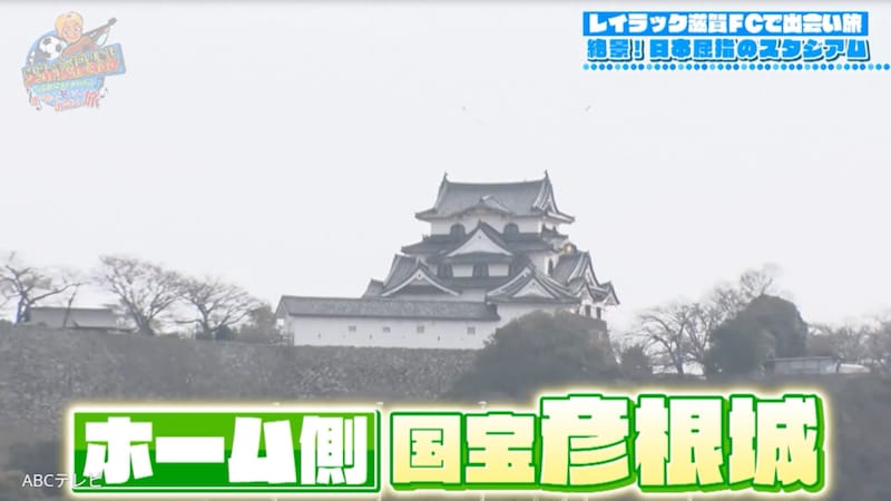 続いてやってきたのは、 レイラックのホームで、2023年に開業したばかりの「平和堂HATOスタジアム」。ホームのゴール裏にそびえ立つのは、国宝・彦根城。さらに反対側には日本百名山の伊吹山という、Jリーグ60クラブの中でも屈指のロケーションを誇るスタジアムだ。