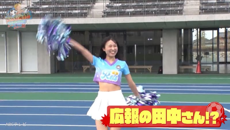 すると、なぜかそこへチアリーダーが乱入! 一同の前でキレッキレのダンスを披露するが…その正体は、先ほどとは雰囲気が一変した広報の田中さん! 実は田中さん、広報とチアダンスチーム「Reis」のメンバーという“二刀流”でチームを全力応援しているのだ。